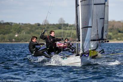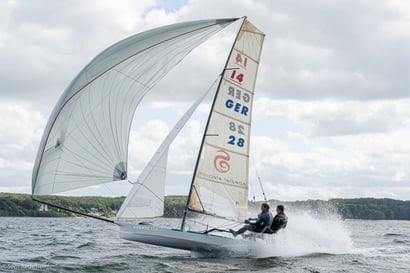 Viele Winddreher prägten den ersten Tag der Ranglistenregatta in Flensburg. David und Max segeln nach vier Rennen auf einen zwischenzeitlichen 5. Platz. Der zweite Tag ist geprägt von Starkwind, sodass Georg und Eike dominieren und die Regatta gewinnen. Mit zwei dritten Plätzen, schaffen es David und Max noch auf das Treppchen hinter die amtierenden Deutschen Meister Oliver Voss und Eike Ehrig.